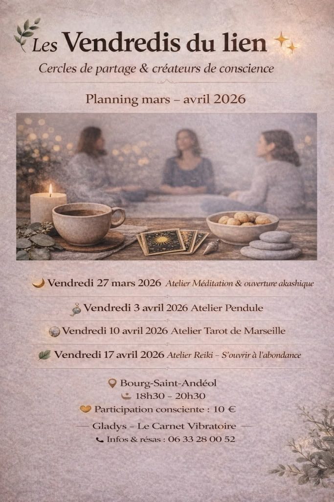 Ces rencontres sont aussi des moments de transmissions d’outils simples et concrets pour t’aider à mieux comprendre certaines dynamiques de vie et de retrouver plus d’autonomie dans ton cheminement.